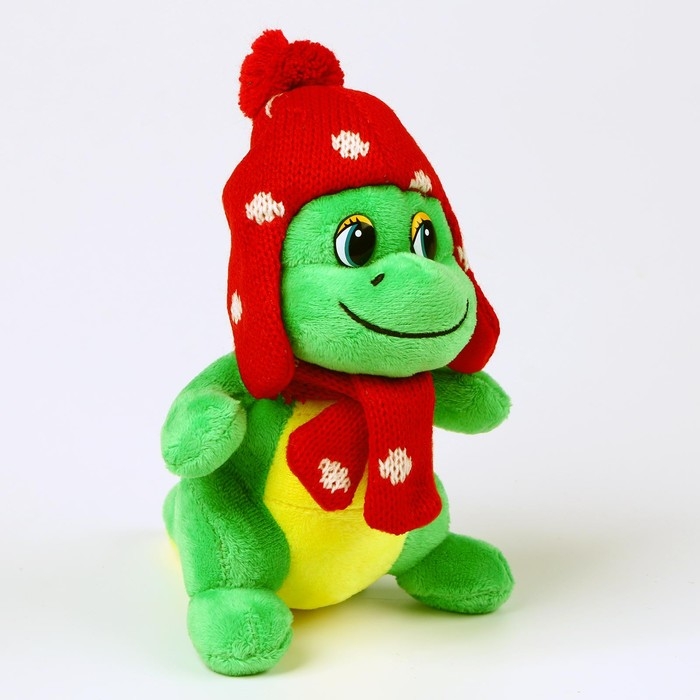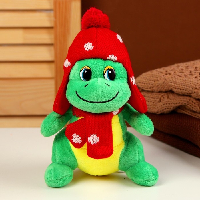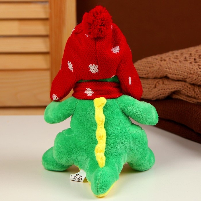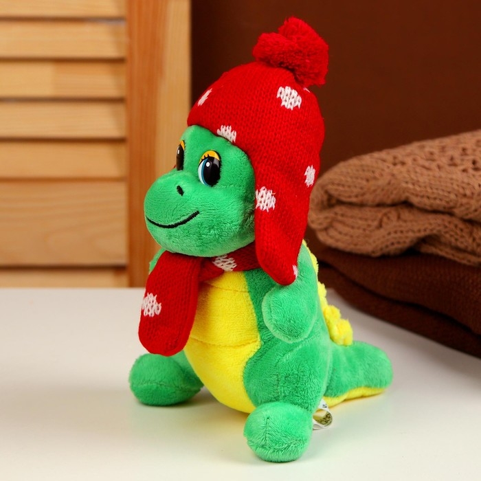 Мягкая игрушка «Дракоша», в красной шапке, 15 см, цвет зелёный