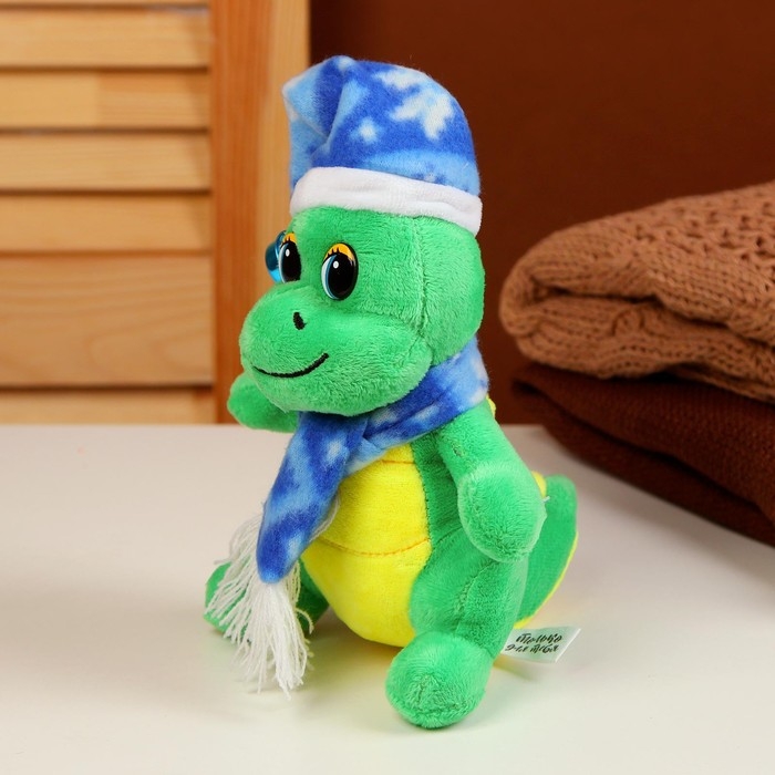 Мягкая игрушка «Дракоша», в синем колпаке, 15 см, цвет зелёный