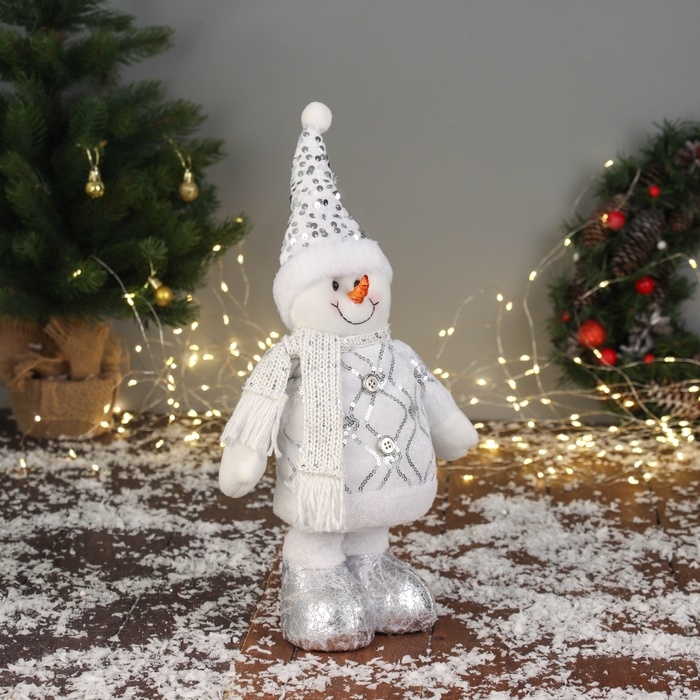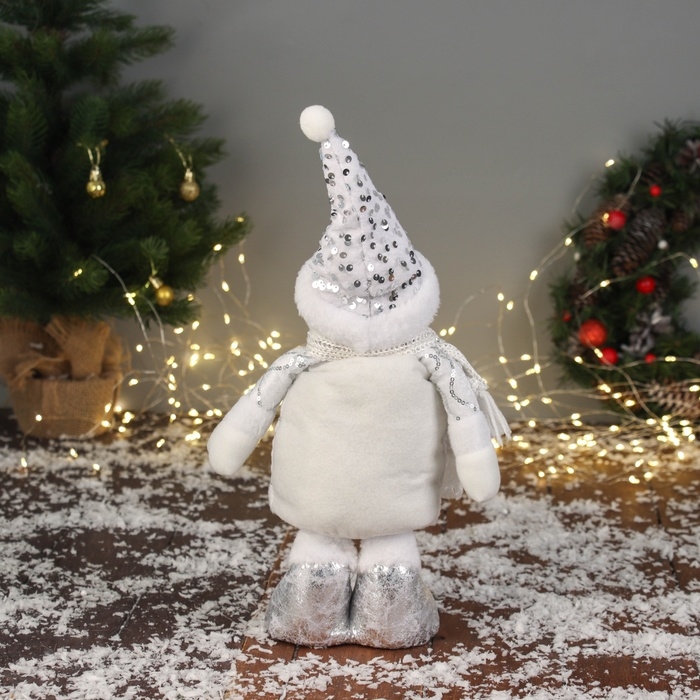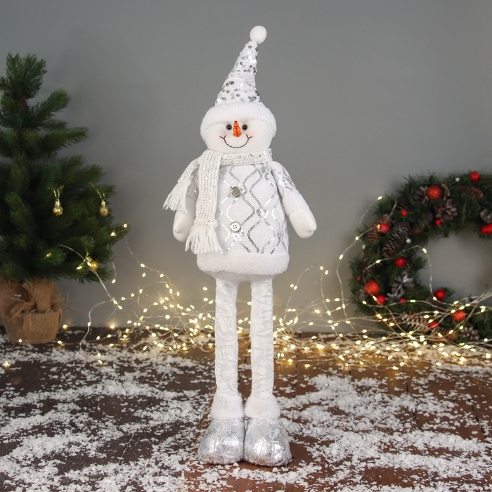 Мягкая игрушка "Снеговик блеск" (59х21 см выдвинутые ножки) 40х21 см, серебристо-белый