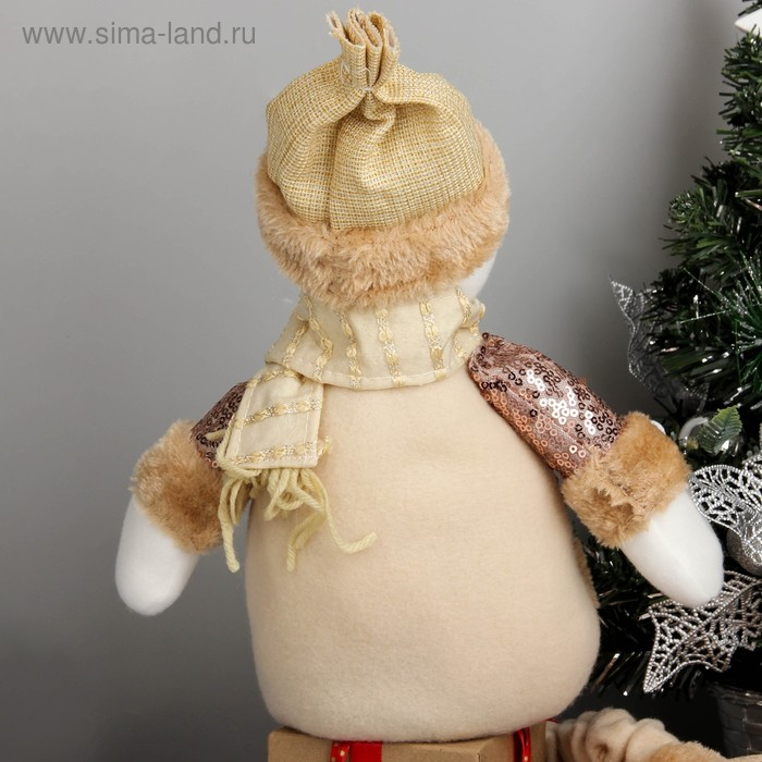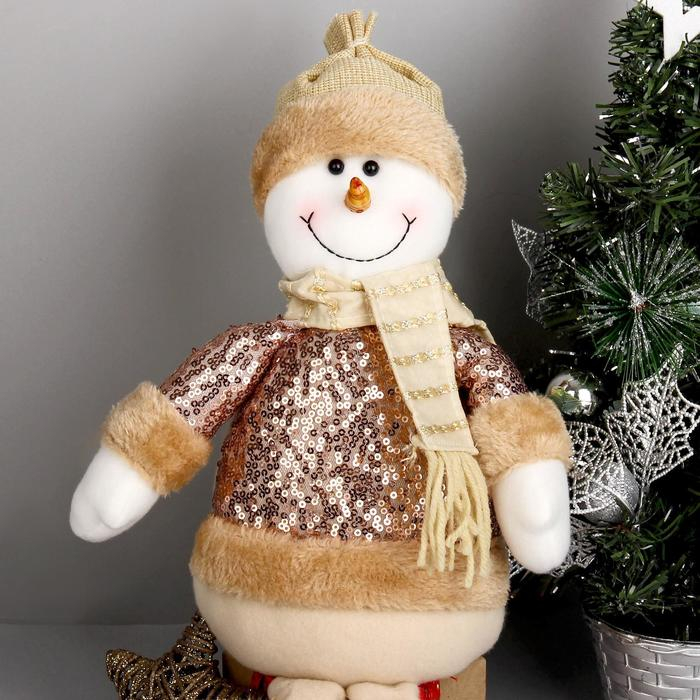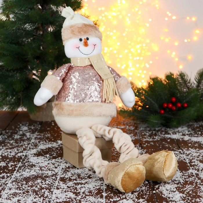 Мягкая игрушка "Снеговик в пайетках - длинные ножки" сидит, 13х52 см, коричневый