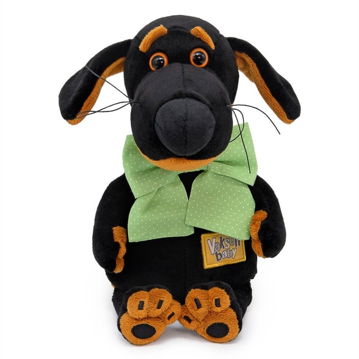 Мягкая игрушка Ваксон — очаровательный пёсик с зелёным бантом в горошек. Пушистый питомец станет другом для малыша и прекрасным компаньоном во всех играх. С прелестной собачкой ребёнок разовьёт фантазию и обретёт верного защитника, который поможет преодолеть страх темноты.
