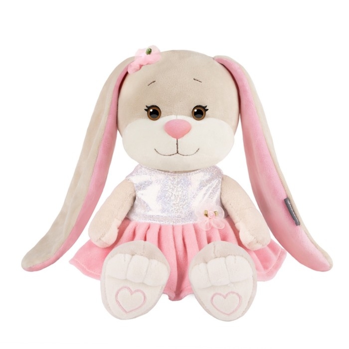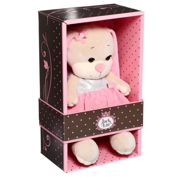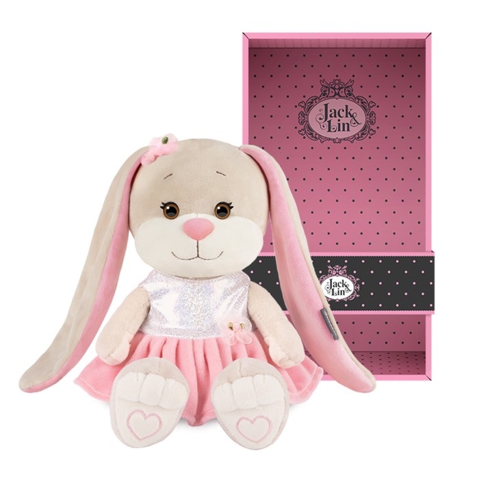 Мягкая игрушка «Зайка Лин» — очаровательная модница в серебристо-розовом платье. Милая зверюшка ищет подружу, с которой будет веселиться и делиться секретами красоты. Играя с ушастой очаровашкой, малышка разовьёт фантазию и воображение.