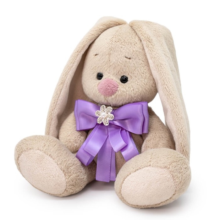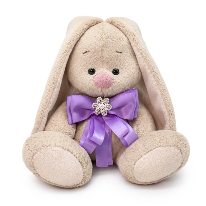Мягкая игрушка «Зайка Ми», с бантиком лавандового цвета и брошкой, 15 см