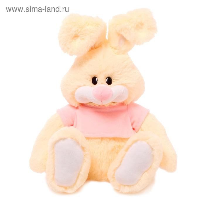 Зайка Тёпа очаровывает своим внешним видом. Мягкий плюшевый заяц подарит ребёнку приятные сновидения. Тёпа станет лучшим другом и будет сопровождать малыша дома и в садике. Игрушка одета в розовую футболку.