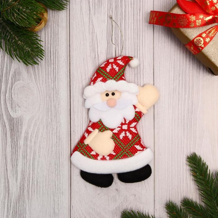 Мягкая подвеска "Дед Мороз" машет, 10х16 см, бело-красный