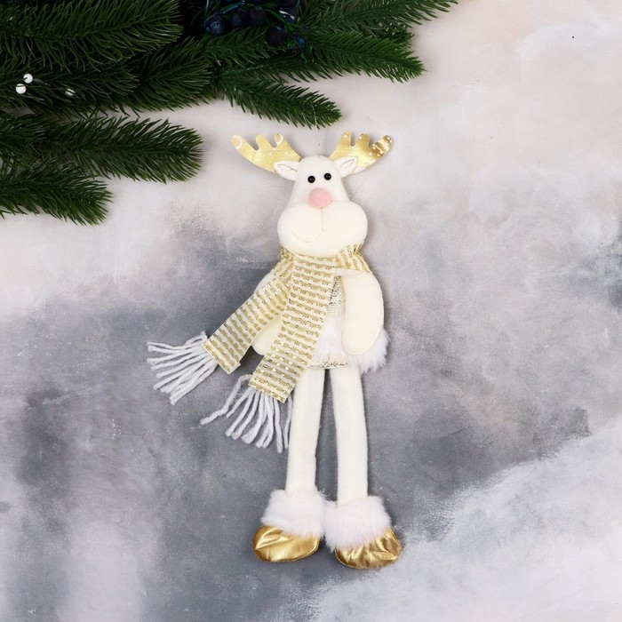 Мягкая подвеска "Олень в костюмчике с геометрическим узором, длинные ножки" 8х25 см, золото 969265