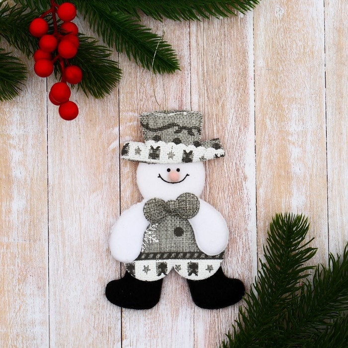Мягкая подвеска "Снеговик в костюмчике с орнаментом лес" 8х14 см, серый