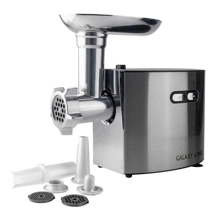 Мясорубка Galaxy GL 2400, 1200 Вт, 1.3 кг/мин, 2 насадки, реверс, серебристая