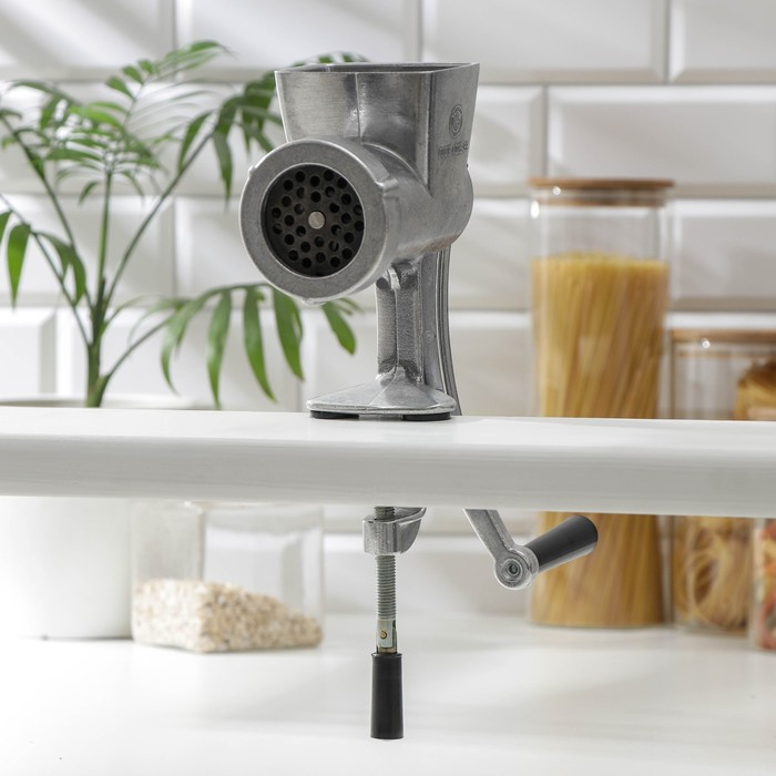 Алюминиевая мясорубка будет полезна как начинающему, так и профессиональному кулинару. Мясорубка предназначена для измельчения мяса. Изделие простое в эксплуатации. Важно решетку ножа установить правильной стороной. Струбцина мясорубки обеспечивает крепление к крышке стола толщиной от 15 до 40 мм при наличии выступа крышки стола не менее 25 мм.