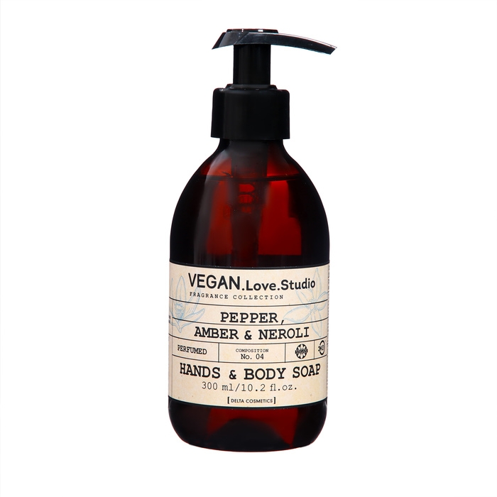 Parfumed Soap Studio VEGAN Love с ароматом перца, амбры и нероли, объемом 300 мл, представляет собой увлажняющее парфюмированное мыло, которое эффективно заботится о коже рук и тела, оставляя на долгое время насладжение шлейфом пряно-восточного аромата.