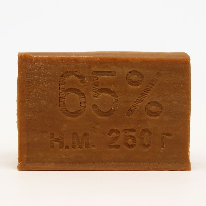 Твёрдое хозяйственное мыло 65 % производится из натурального жирового сырья по традиционной рецептуре и в соответствии с требованиями ГОСТ. Оно не содержит отдушек и красителей. Средство обладает высокой отстирывающей способностью даже в холодной жёсткой воде и полностью выполаскивается из тканей.
