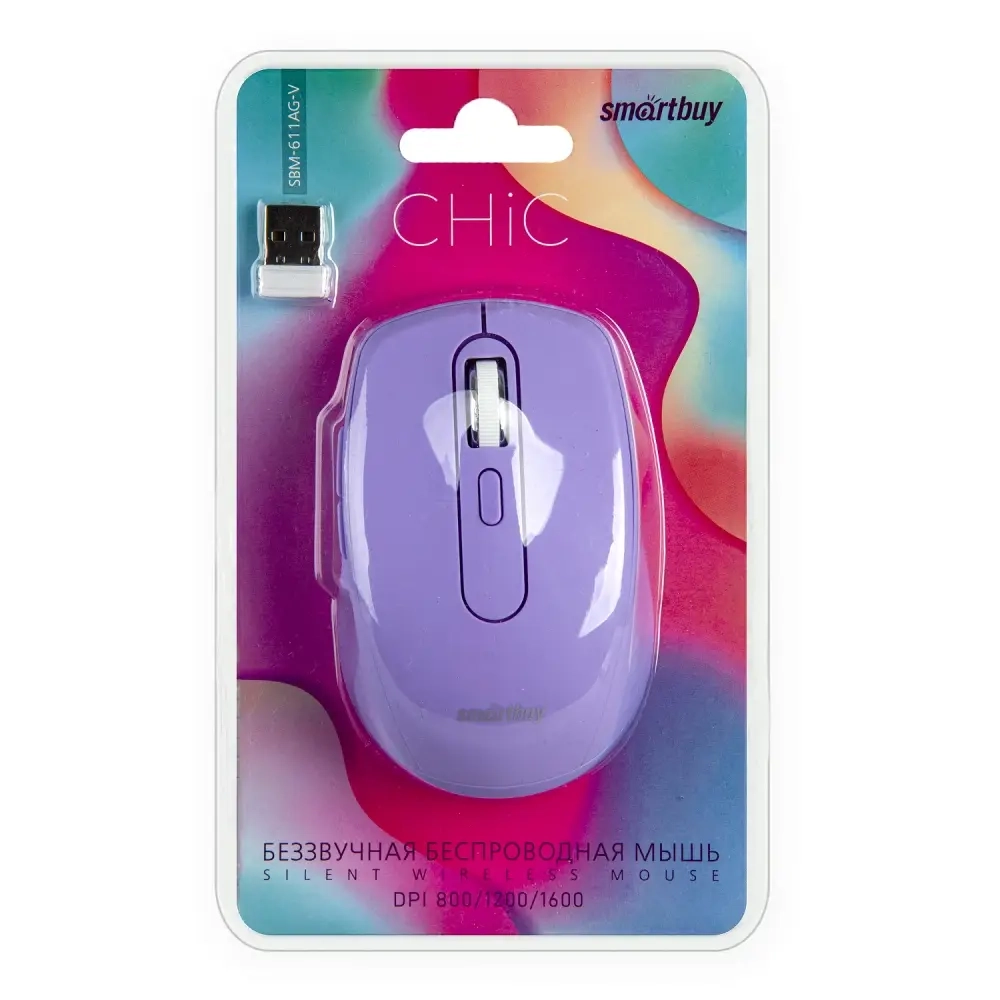 Мышь беспроводная беззвучная Smartbuy 611AG лиловая