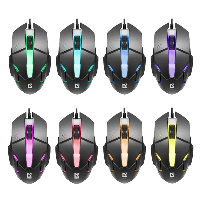 Мышь Defender Host MB-982, проводная, оптическая, игровая, подсветка, 1000 dpi, USB, черная