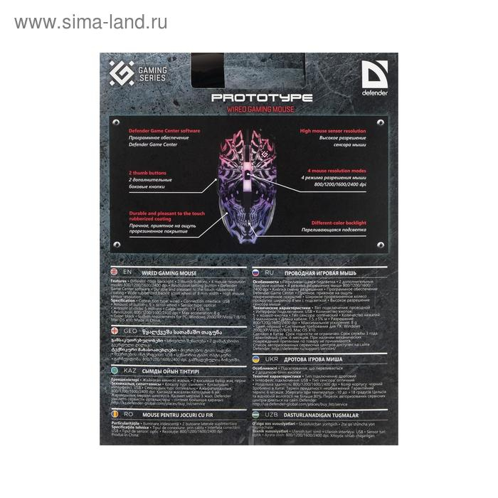 Мышь Defender Prototype GM-670L, игровая, проводная, 6 кнопок, подсветка, 3200 dpi, USB, чер