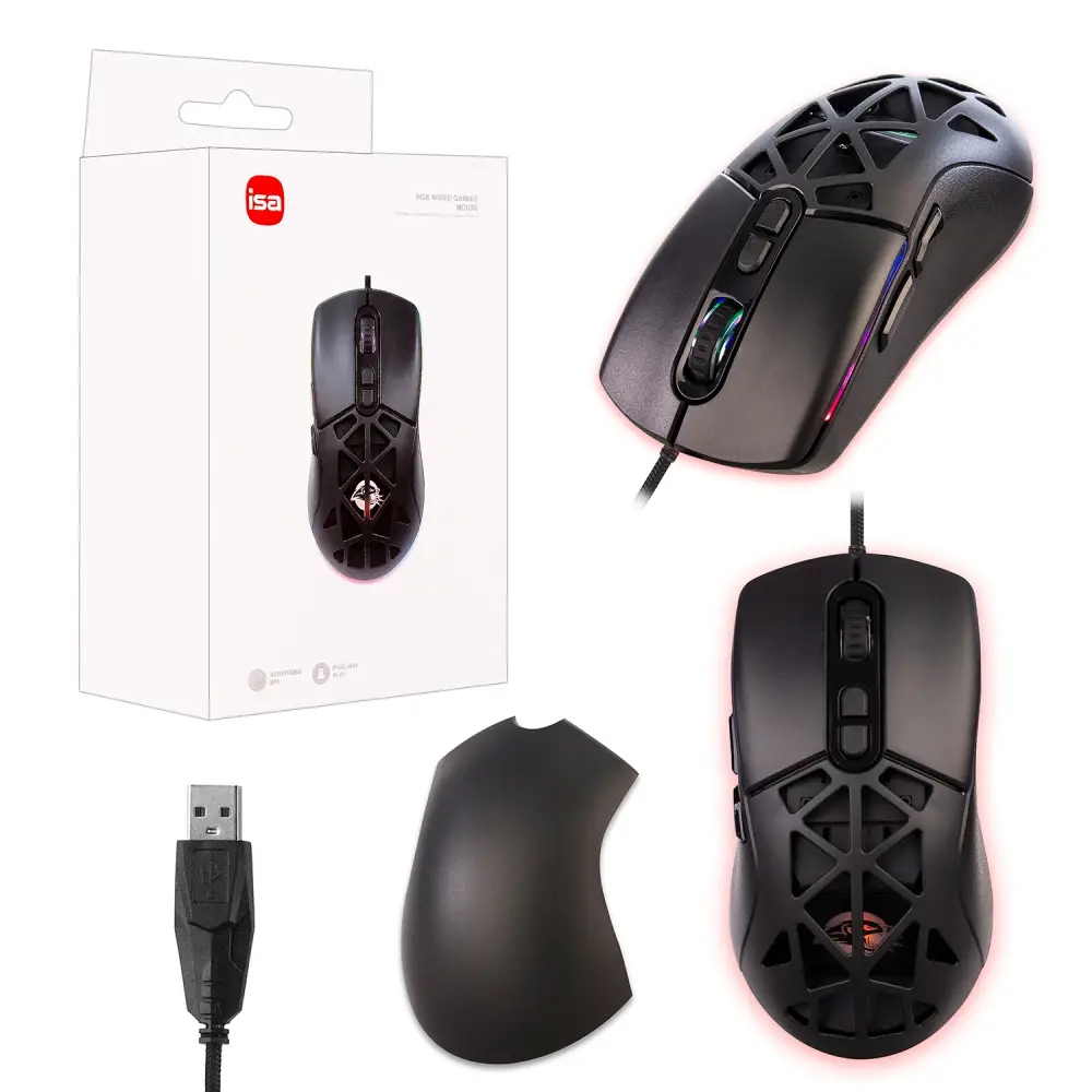 Мышь игровая проводная с подсветкой со сменными панелями GM-5 ISA черная (50шт/кор)