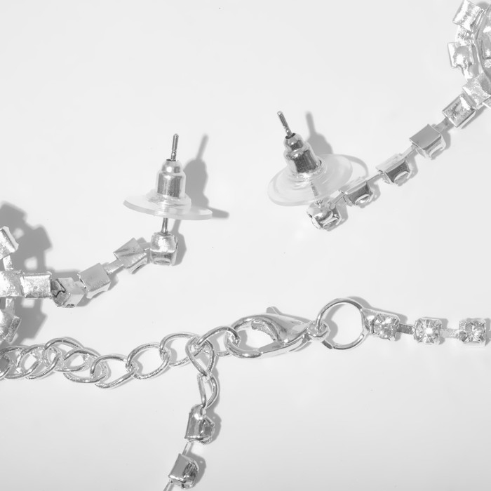 Набор 2 предмета: серьги, колье «Изумление» цветение, цвет белый в золоте, 42 см