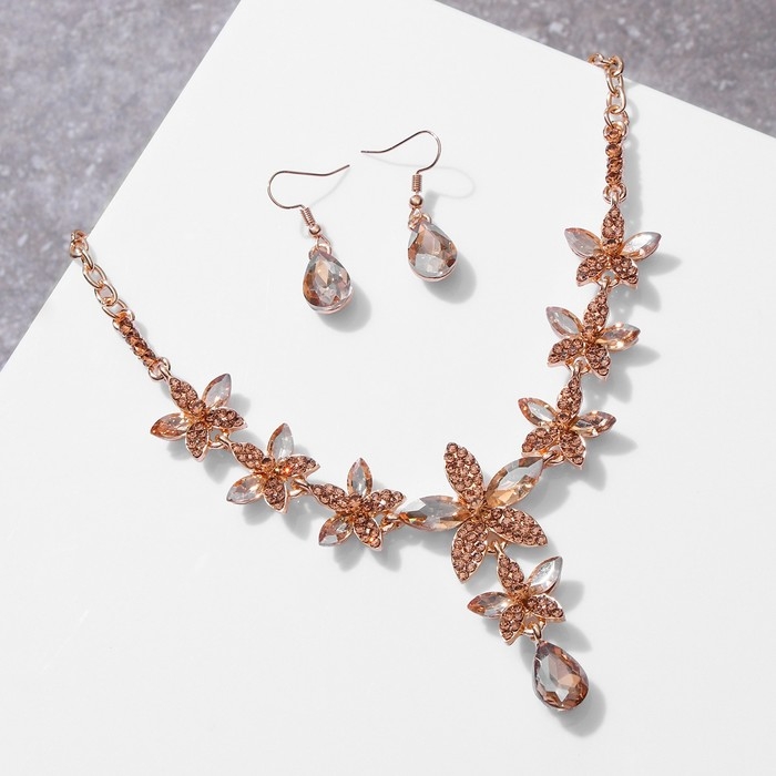 Набор 2 предмета: серьги, колье «Великолепный век» цветы, цвет золото, 42 см