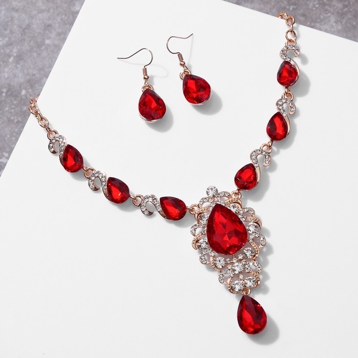 Набор 2 предмета: серьги, колье «Вернисаж» сердце и цветы, цвет бело-красный в золоте, 42 см