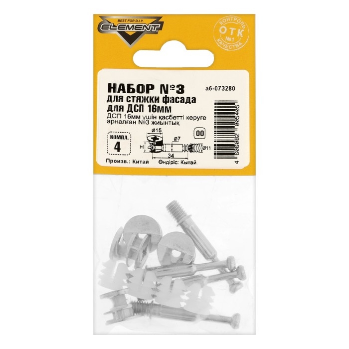 Набор №1 для стяжки фасада для ДСП Element, 16 мм, на блистере, 4 комплекта