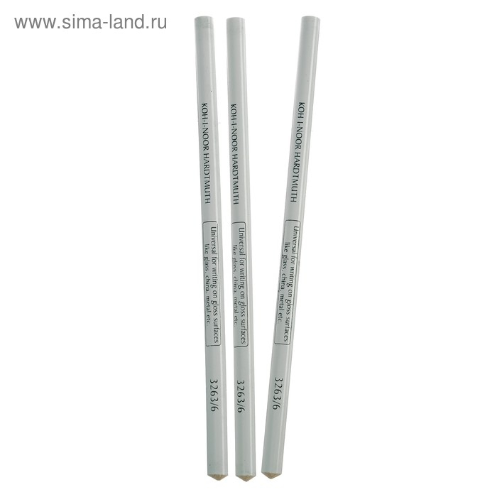 Набор 3 штуки карандаш специальный Koh-I-Noor 3263/6 для письма по стеклу, металлу, пластику, белый (1295192)