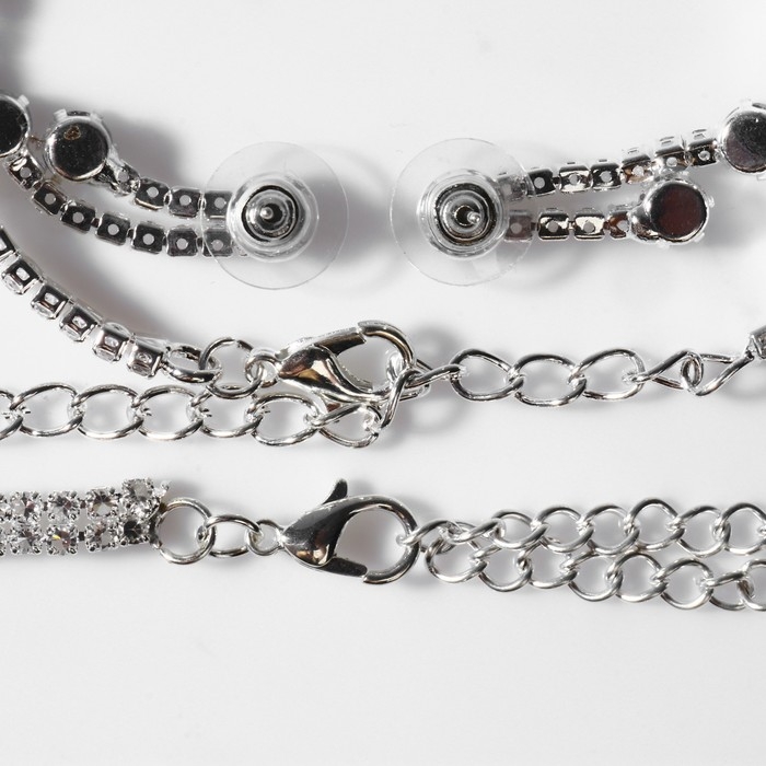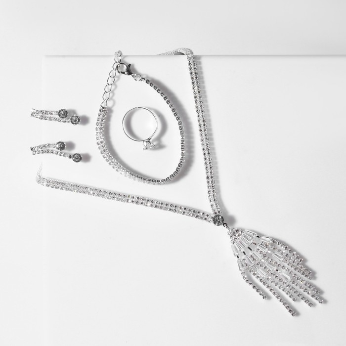 Набор 4 предмета: серьги, колье, браслет, кольцо «Грация» водопад, цвет белый в серебре