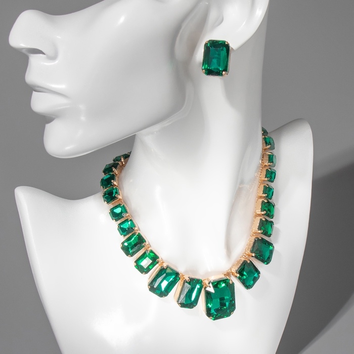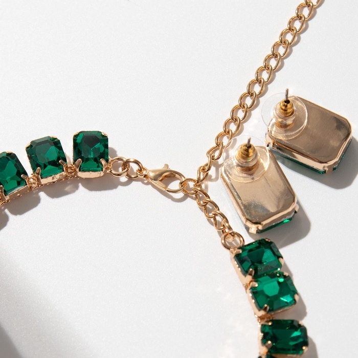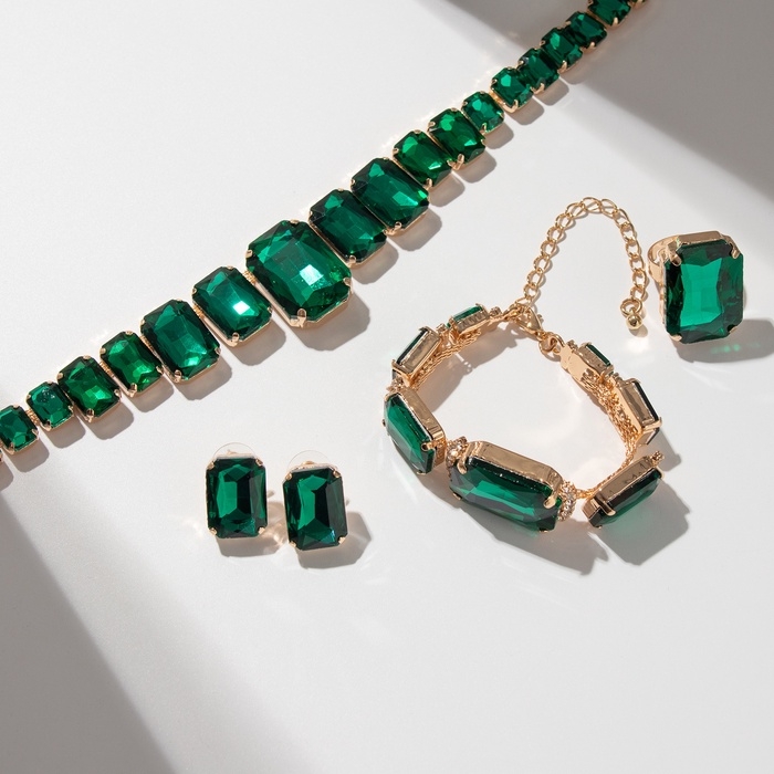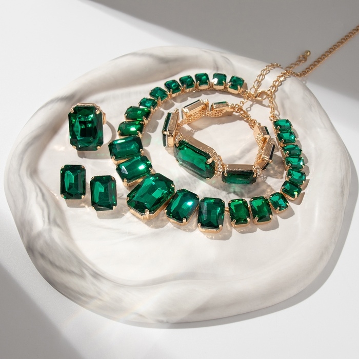 Набор 4 предмета: серьги, колье, браслет, кольцо «Вечерний» объём, зелёный в золоте