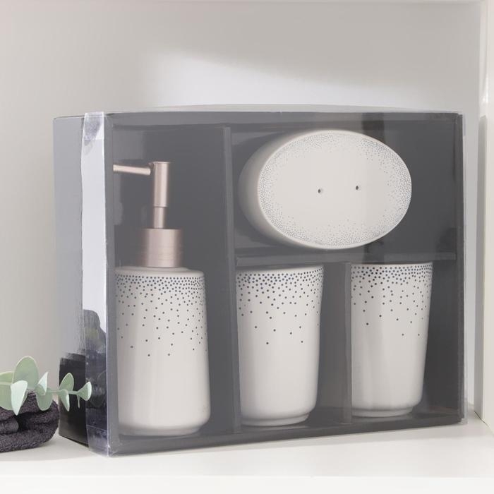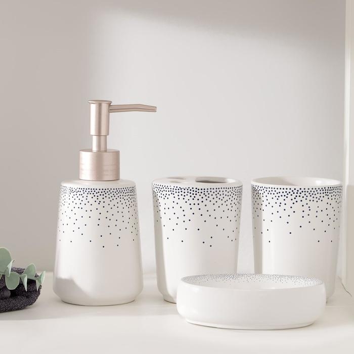 Набор аксессуаров для ванной комнаты «Брызги», 4 предмета (дозатор 300 мл, мыльница, 2 стакана), цвет белый