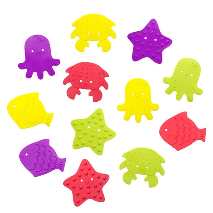 Набор антискользящих мини-ковриков для ванны 12 шт., цвет МИКС