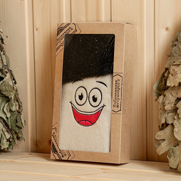 Набор банный "Смайл 3" Шапка с вышивкой, мочалка в коробке