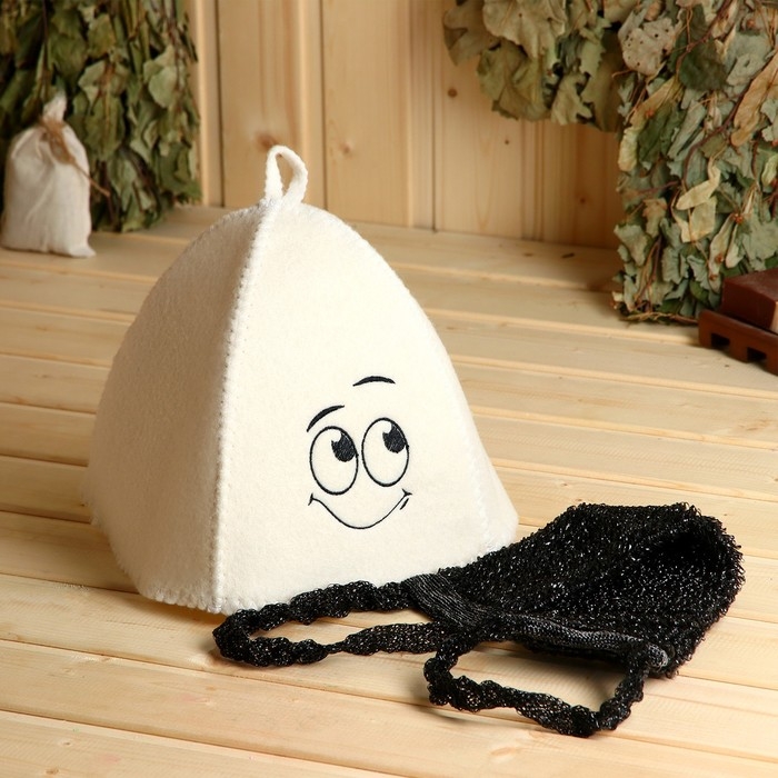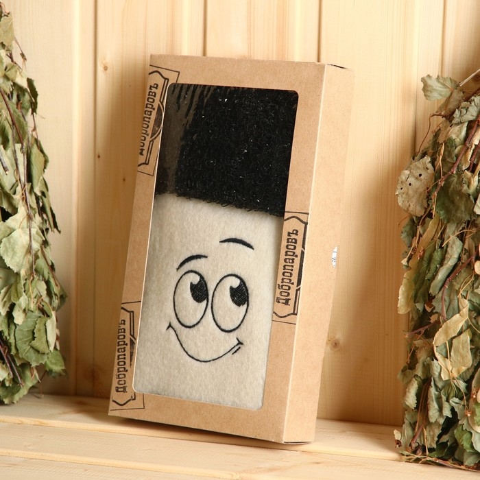 Набор банный "Смайл 4" Шапка с вышивкой, мочалка в коробке