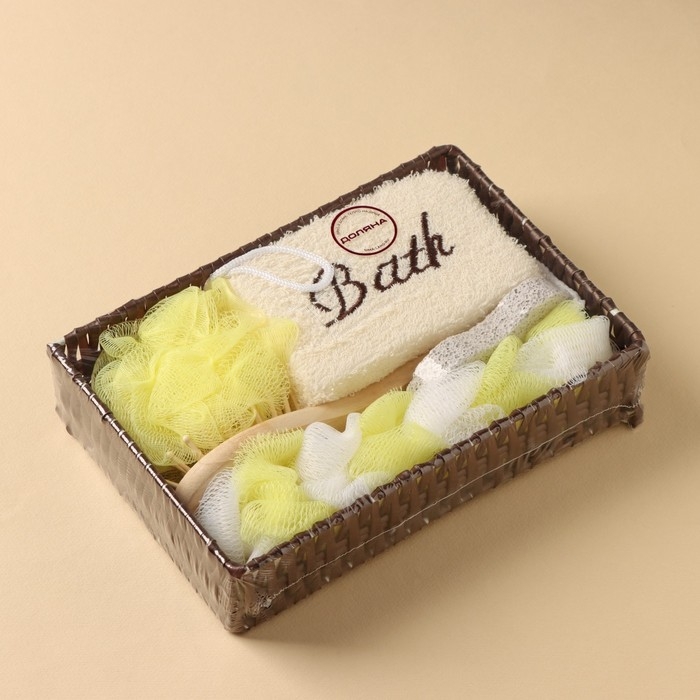 - Аксессуары для тела из натуральных материалов, входящие в состав набора для душа помогут расслабиться и получить от процесса максимум удовольствия.