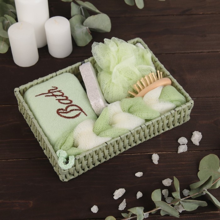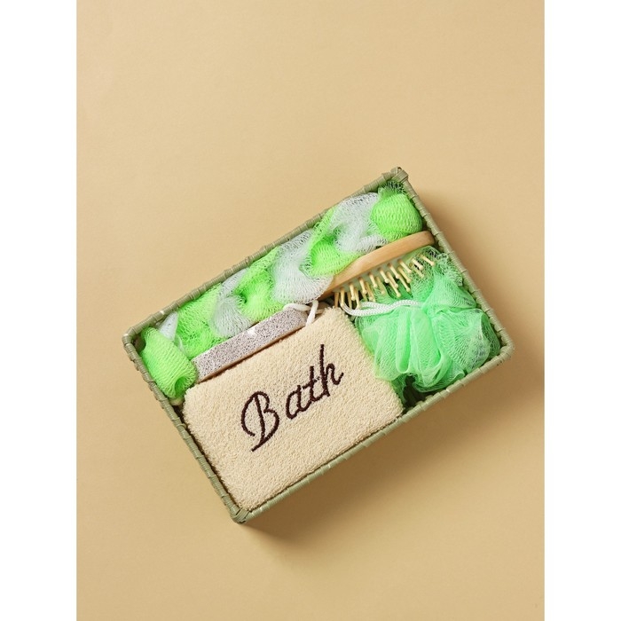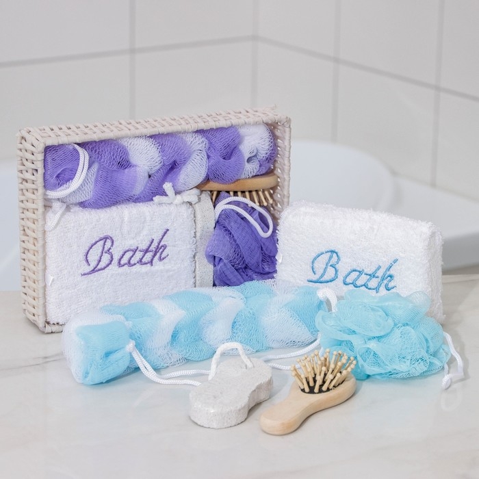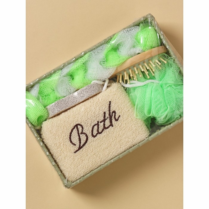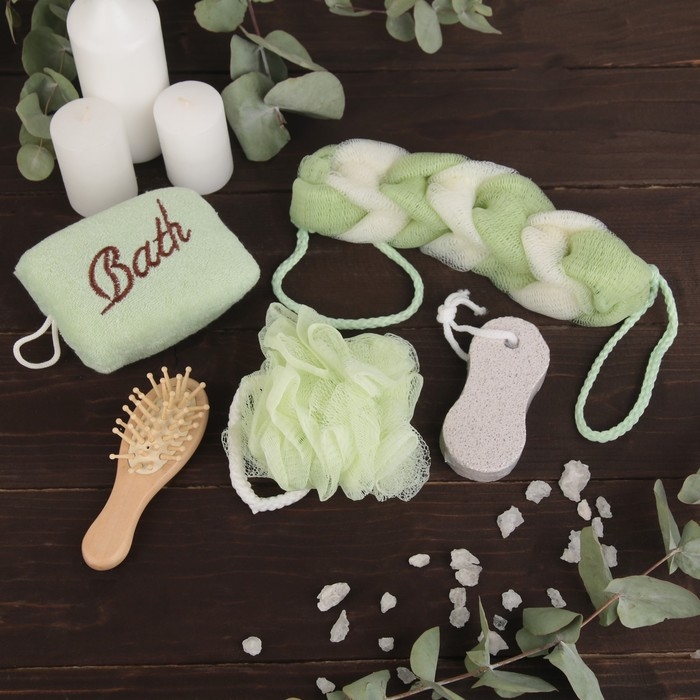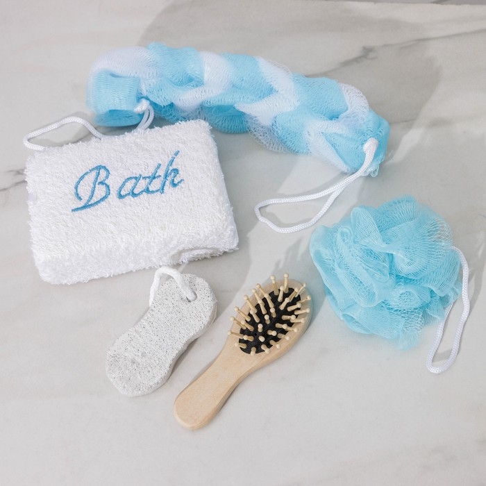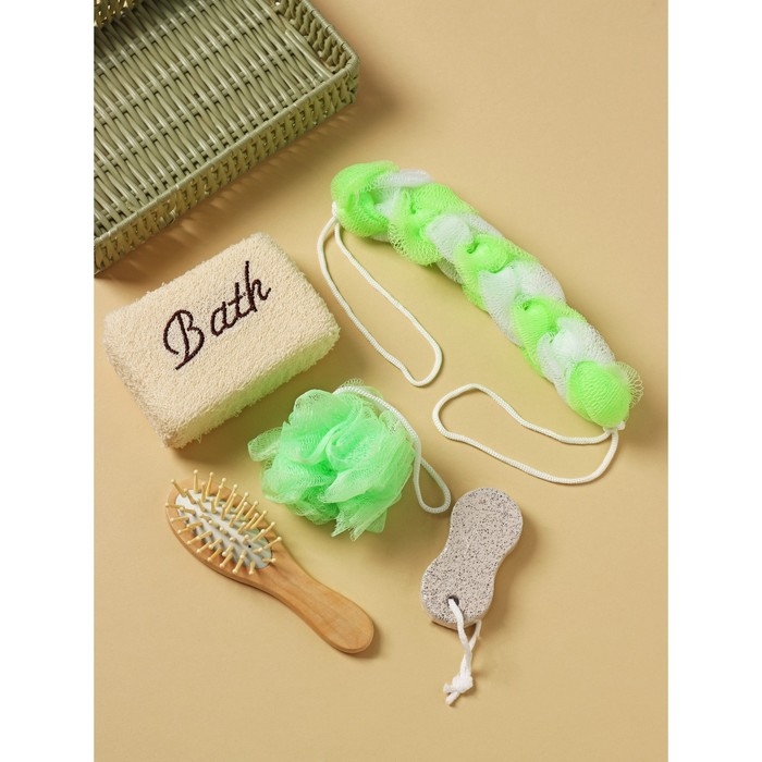 Набор банный Доляна, 5 предметов (3 мочалки, расческа, пемза), цвет МИКС