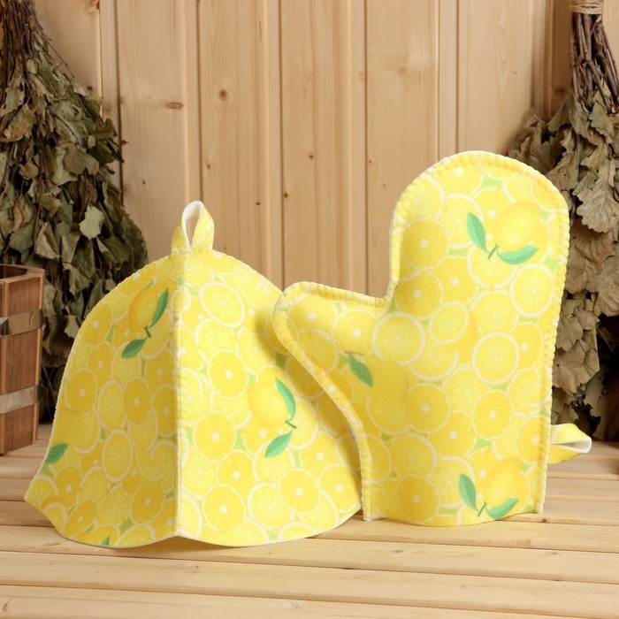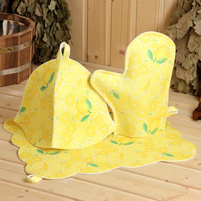 Набор банный принтованный "Лимончик" (шапка+рукавица+коврик)
