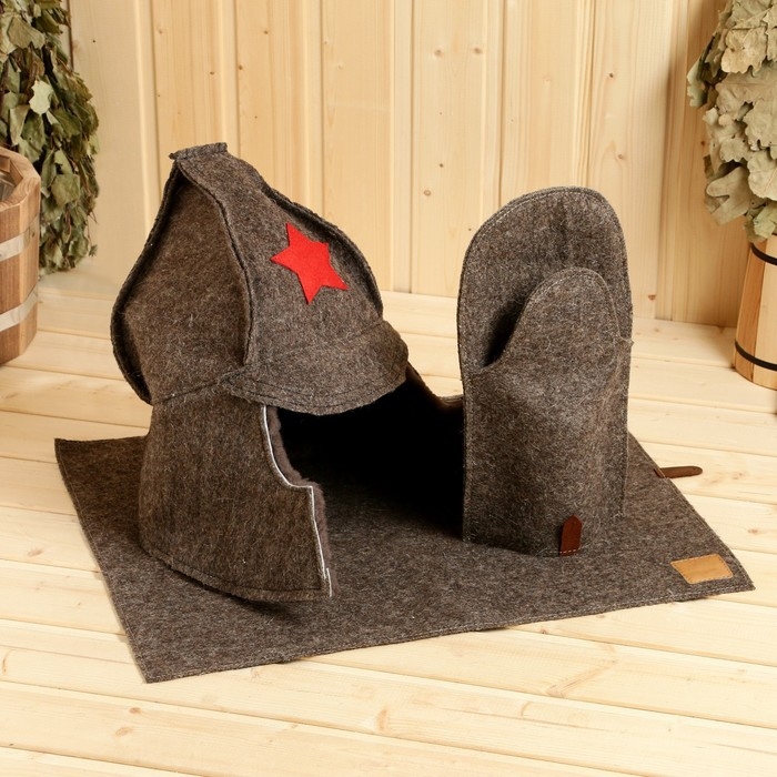 Набор для бани "Генерал" фуражка, коврик, рукавица