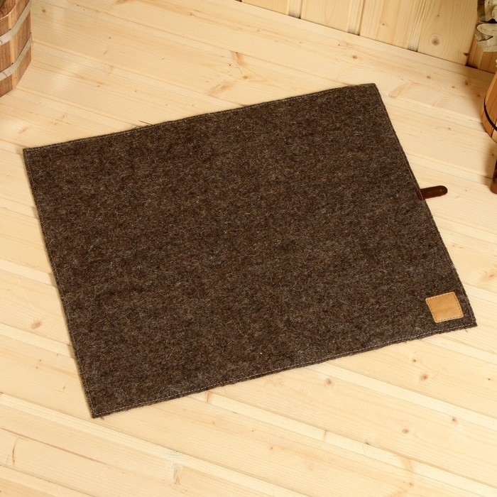 Коврик-сидушка из войлока впитывает влагу и сохраняет сухость, что обеспечивает комфорт во время посещения парной.