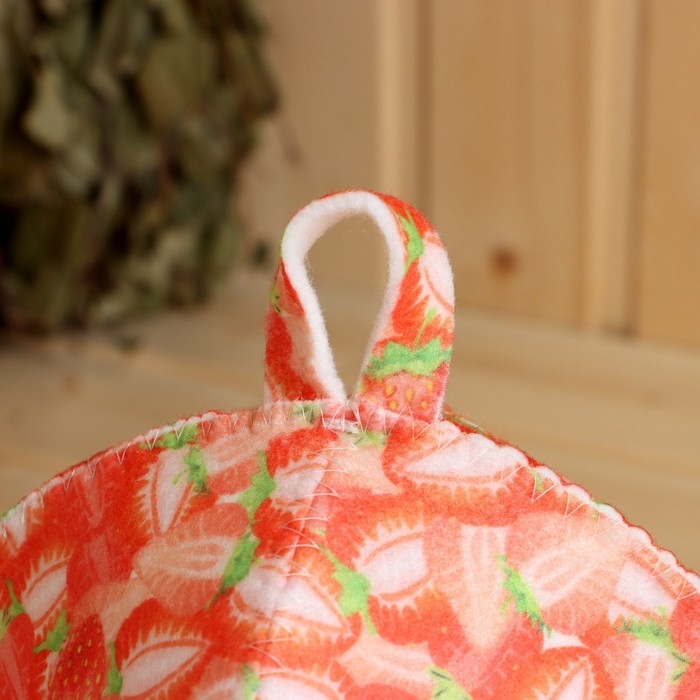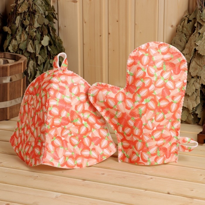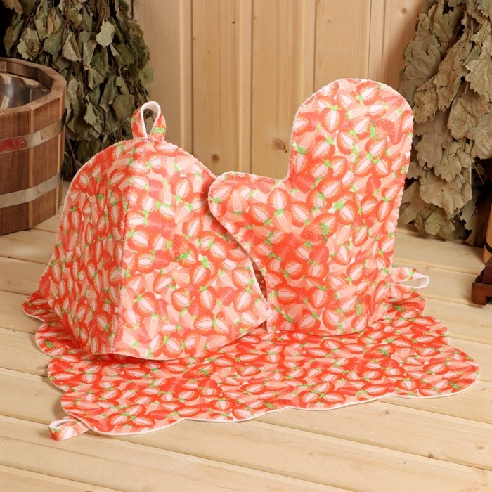 Набор банный женский "Клубничка" (шапка+рукавица+коврик)