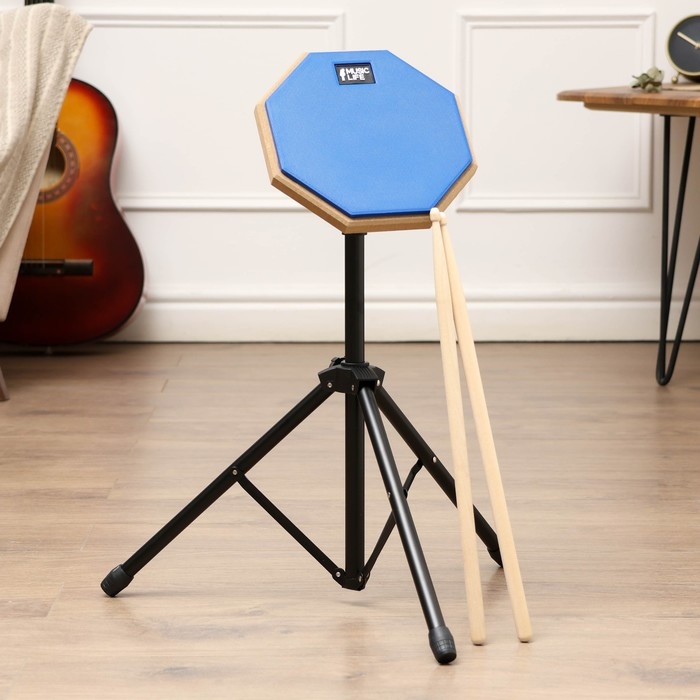Набор барабанщика Music Life: пэд 8 дюймов, стойка, барабанные палочки, синий