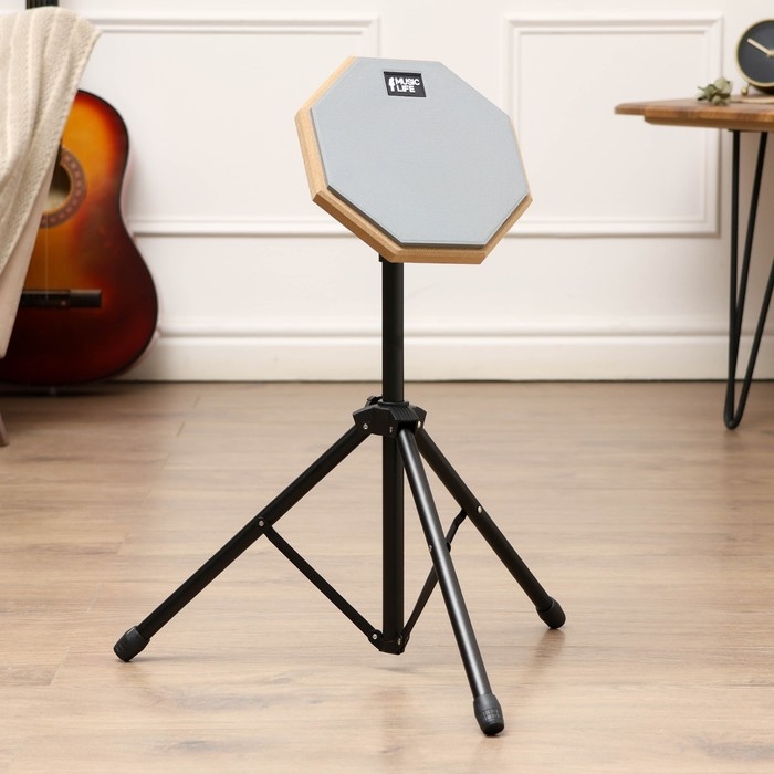 Набор барабанщика Music Life: пэд 8 дюймов, стойка, серый