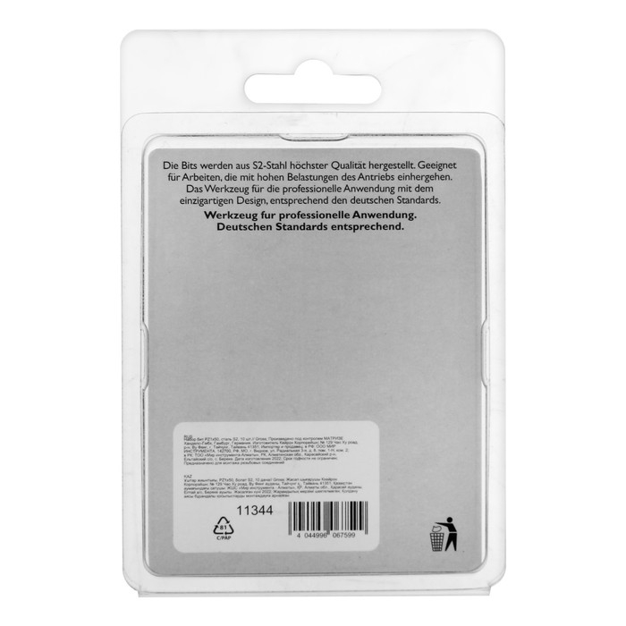 Набор бит GROSS 11344, PZ1х50, сталь S2, 10 шт