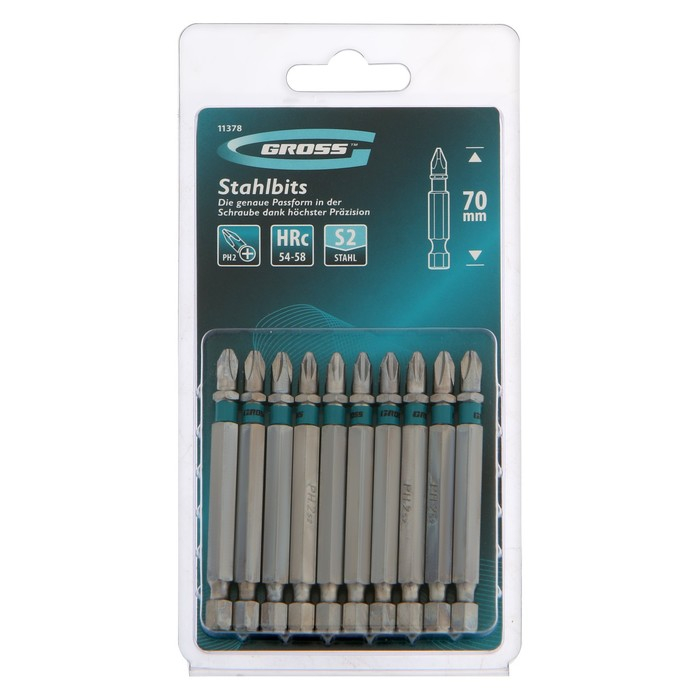 Набор бит GROSS 11378, PH2 х 70 мм, сталь S2, 10 шт.