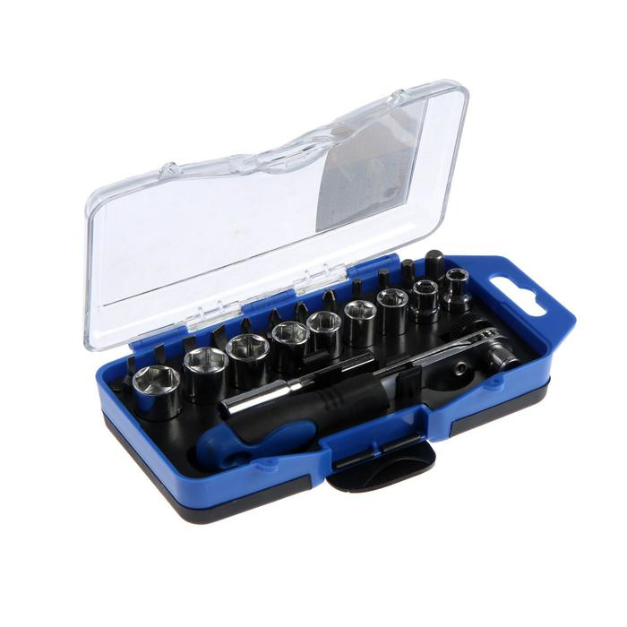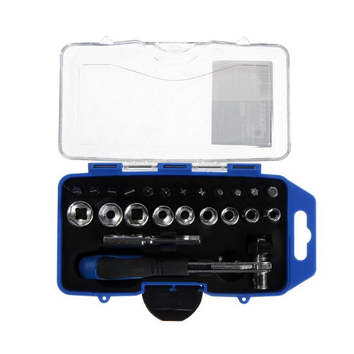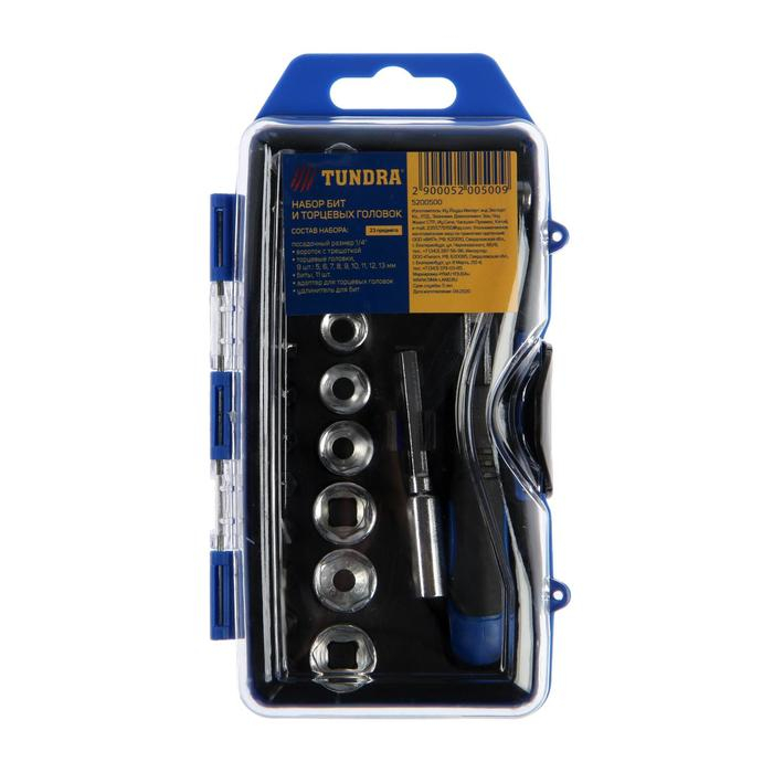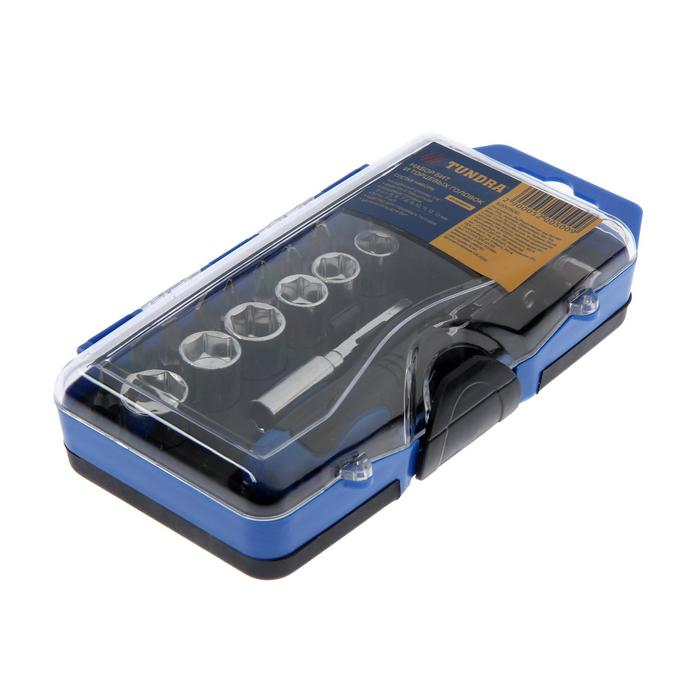 Набор бит и торцевых головок ТУНДРА, вороток с трещоткой, в пластиковом кейсе, 23 предмета