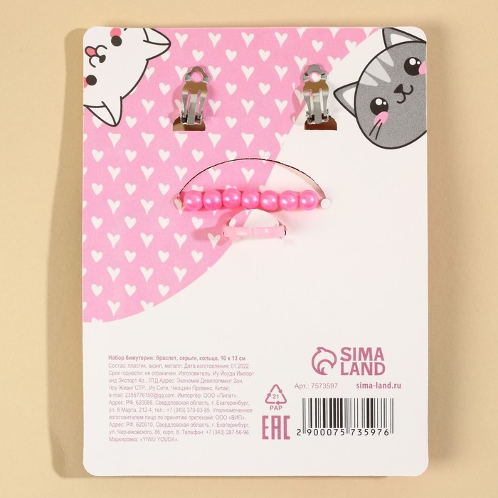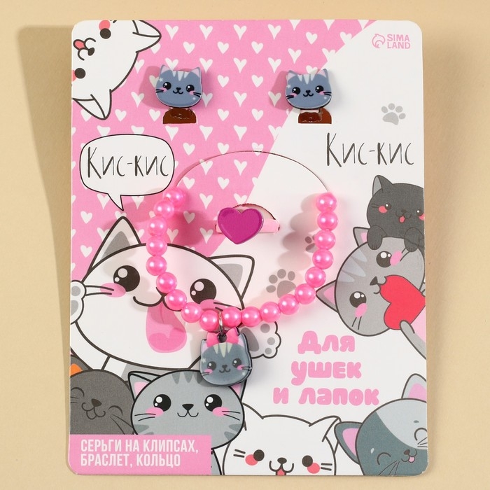 Набор бижутерии «Кис-кис» браслет, серьги, кольцо