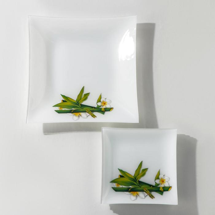 Набор тарелок стеклянных Доляна «Колибри», 19 предметов: 6 десертных тарелок, 6 обеденных тарелок, 6 мисок, салатник