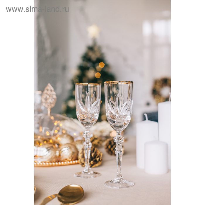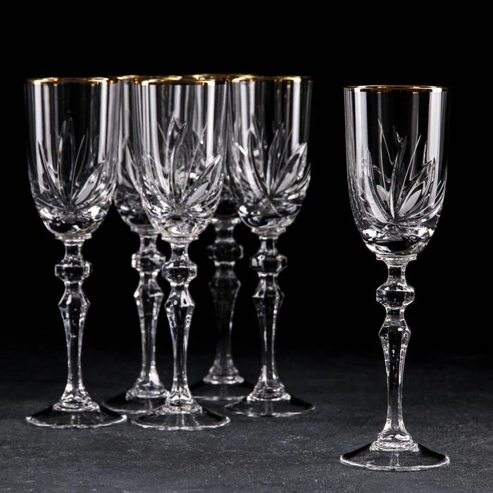 Набор бокалов хрустальных для вина «Цветок», отводка золотом, 160 мл, 6 шт