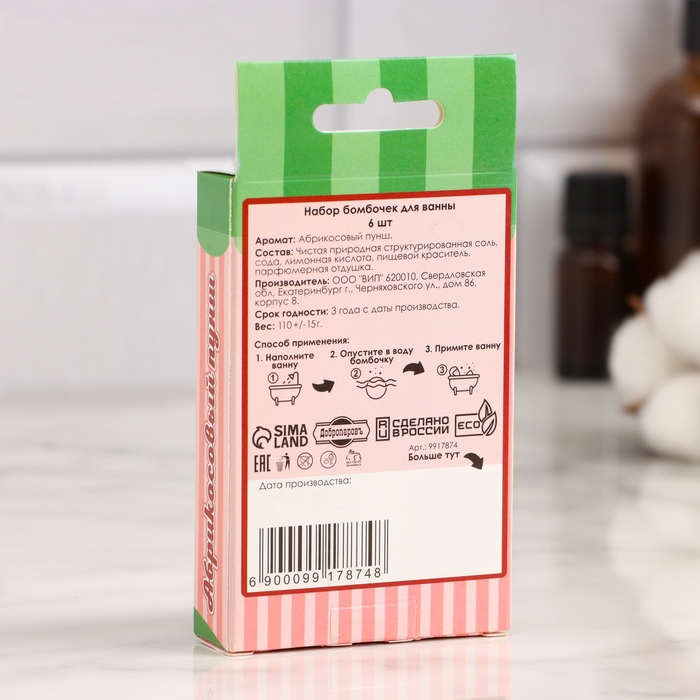 Набор бомбочек для ванны 6 шт "Абрикосовый пунш" по 25 г