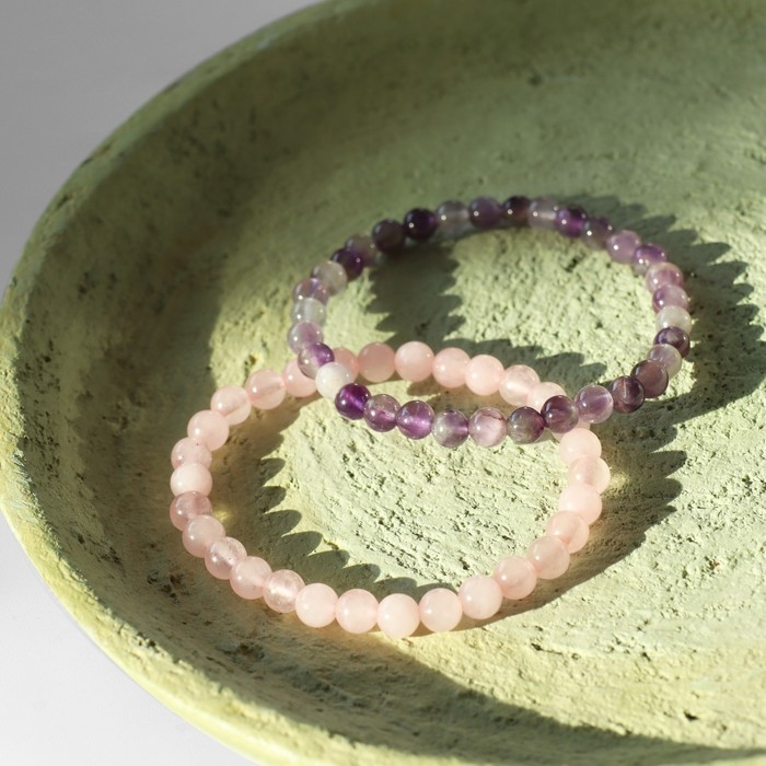 Набор браслетов 2 шт. шар №6 «Кварц розовый и Аметист»