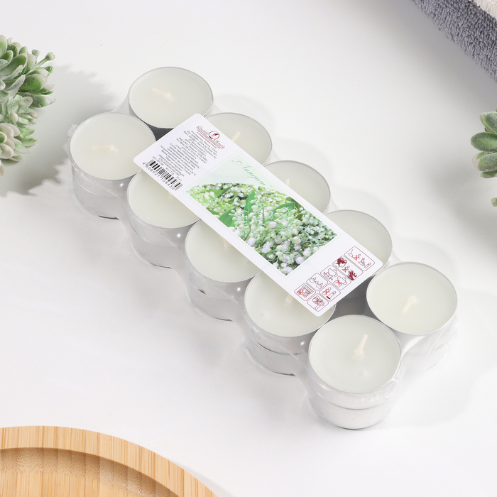 Набор чайных свечей ароматических в термоусадке "Ландыш", 3,8х1,6 см, 3,5 ч, 12 г, 20 штук