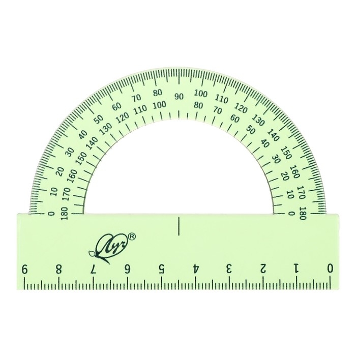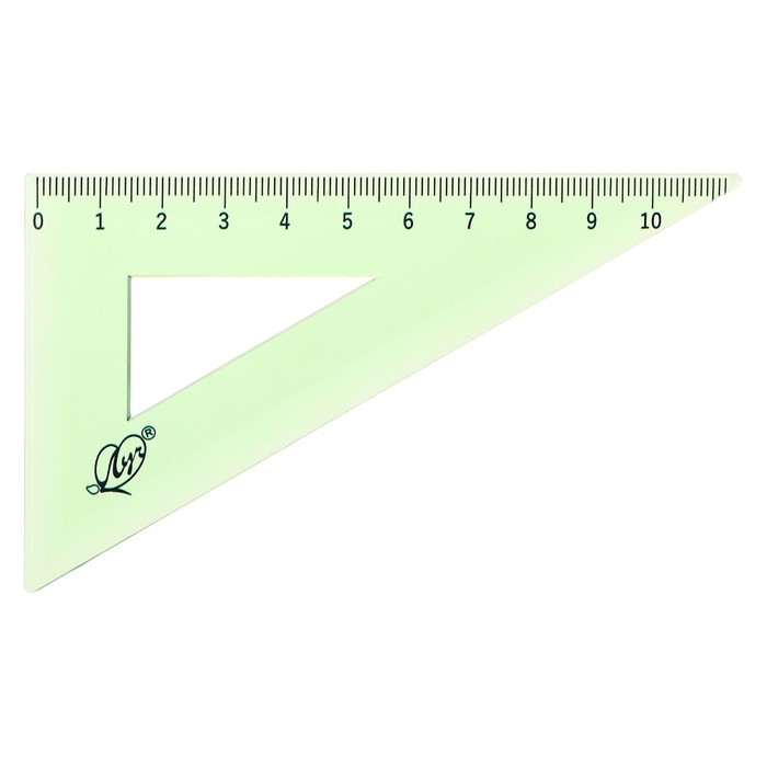 В наборе: Линейка 15 см, угольник 30 градусов/ 60 градусов, 10 см; угольник 45 градусов/ 45 градусов, 8 см; транспортир 180 градусов, 9 см.