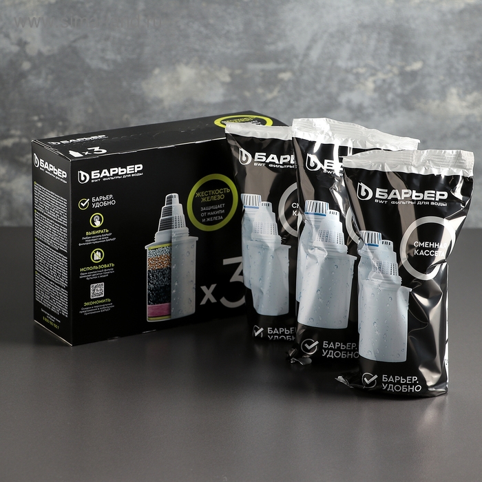 Комплект кассет «Барьер. Жёсткость железо» позволяет смягчить водопроводную воду, снизить образование накипи в чайнике и тем самым продлить срок его службы. Также жидкость эффективно очищается от хлора, тяжёлых металлов, растворённого железа и других примесей, негативно влияющих на состояние нашего здоровья. Удаляется характерный запах и неприятный привкус.