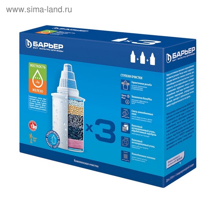 Набор сменных картриджей «Барьер-Комплекс», 3 шт, очистка от жёсткости и железа